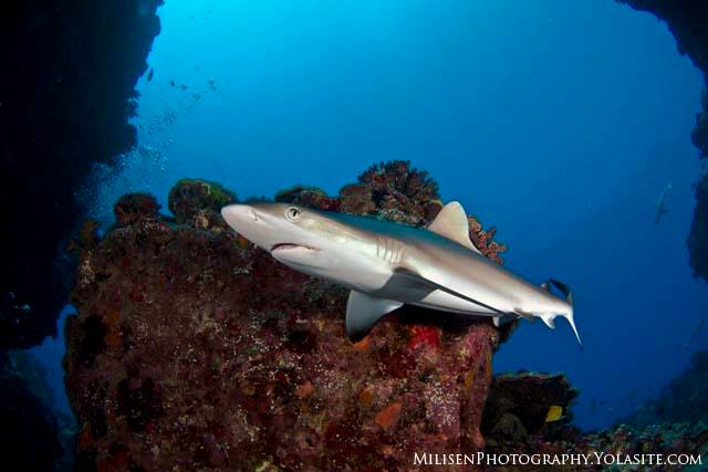 Such projects have inspired a love for the ocean that extends into his leisure activity. He has lately been spending time promoting pelagic night dives (popularly called blackwater) from the island of Oahu. Such dives highlight the epi- and meso-pelagic plankton communities that blend together near the surface after the sun goes down. He has also documented many of Hawaii’s lesser-known wrecks and has discovered 2 World War II era plane wrecks around Oahu and one at Midway Atoll. The work for which he is most celebrated is his intimate portraits of Hawaii’s sharks. Good luck has shined on Jeff to bring him encounters with every Hawaiian species from unusual cookie cutters to infamous tigers and even a pair of gargantuan whale sharks.